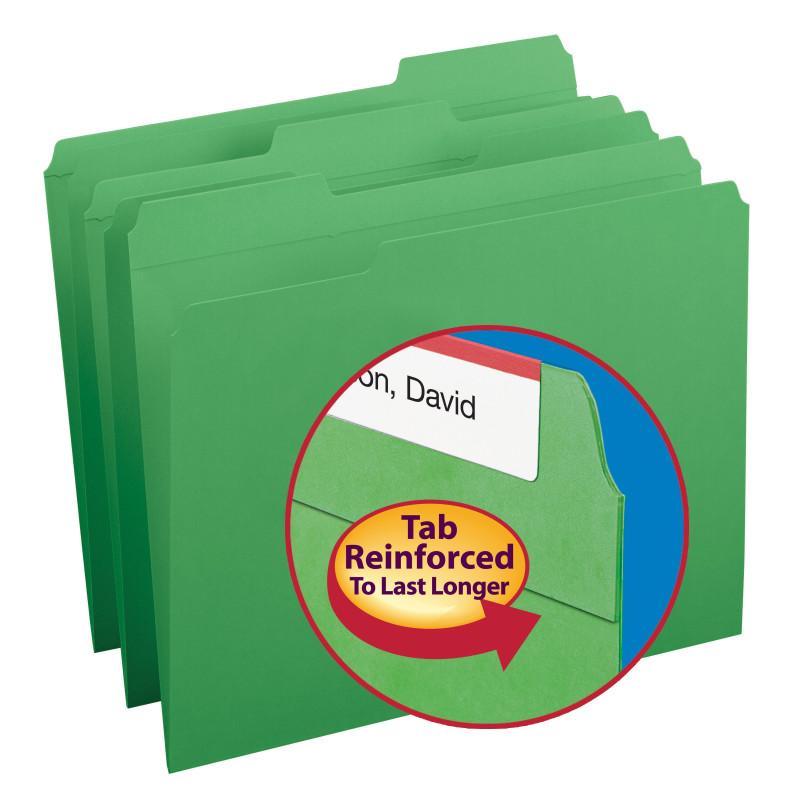 Smead File Folder, Reinforced 1/3-Cut Tab, Letter Size, Green, 100 per Box (12134)