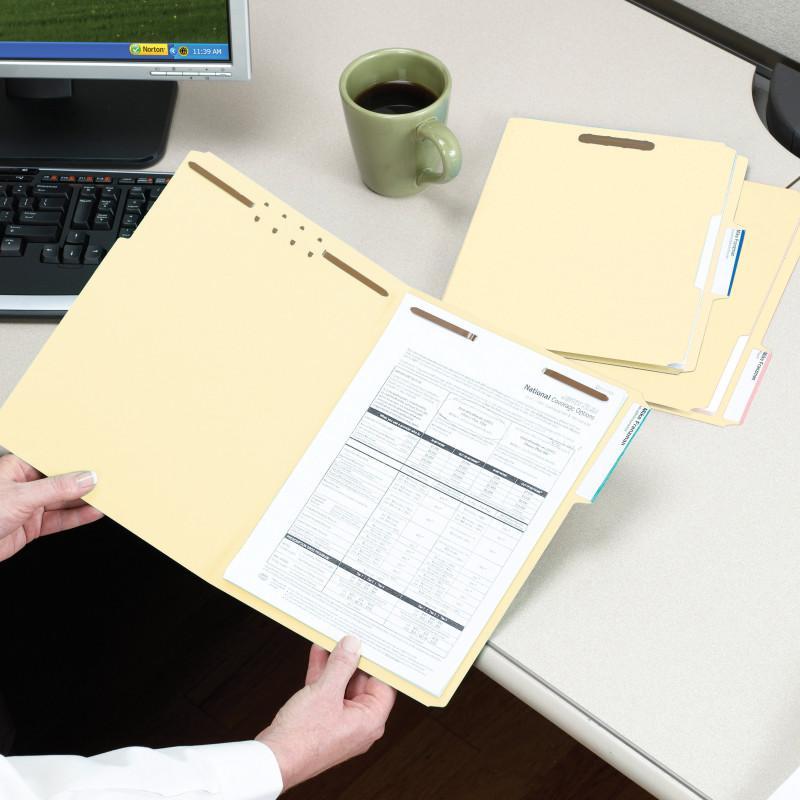 Heavy-duty manila fastener folders feature a thicker paper stock that will stand up better to the challenges of frequent or lengthy use. Two fasteners per folder provide two separate filing surfaces and a secure way to organize your documents.
