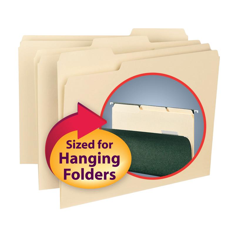 - These special sized folders fit neatly inside hanging folders so the tab remains hidden when returned to the file