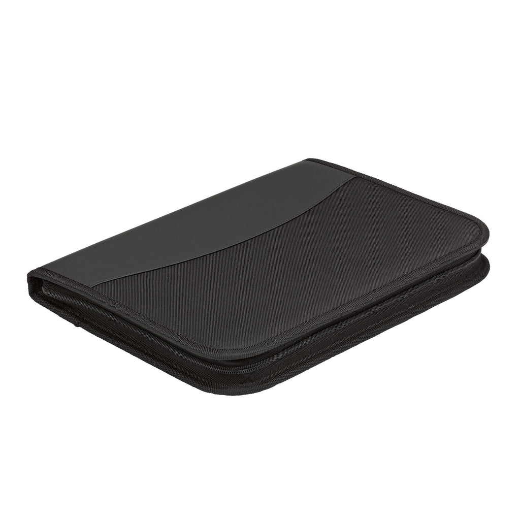 The Smead padfolio is an essential organizational tool for working out of your car or home office. Professional appearance for customer meetings, with practical storage and portability. Features an oversized expanding pocket for a tablet, and a zippered pocket for a phone, flash drive or keys. Includes a lined notepad, pen loop and pockets for business cards and notes. Padfolio is durable and made of tear and water resistant nylon material with a faux leather accent on the front.