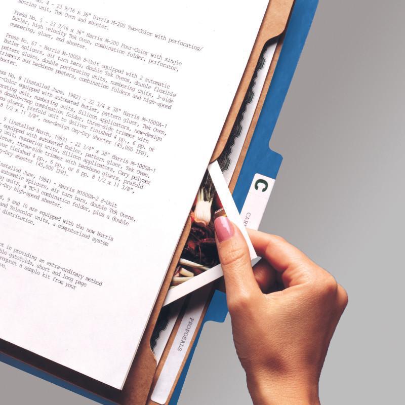 Protect your documents and fingers with Smead's patented SafeSHIELD® Coated Fastener Technology; the ultimate solution to fastener issues, including paper tears, finger cuts and excessive fastener crinkling. Heavy-duty classification folders make ideal project files. Choose one, two or three dividers. Sturdy